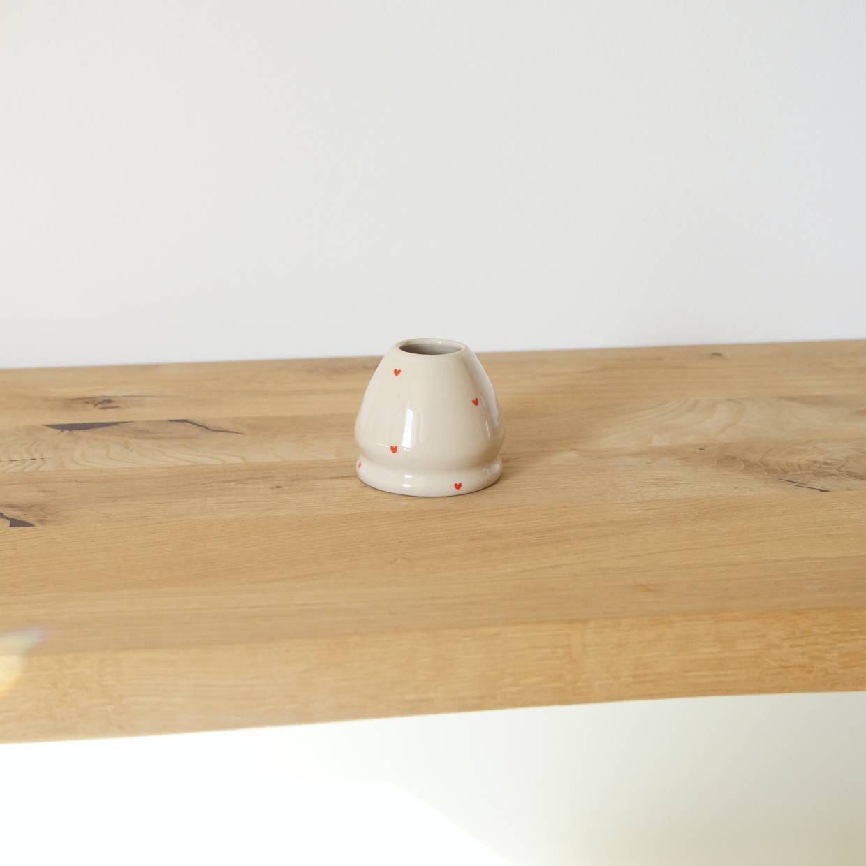Für alle, die Matcha lieben und’s gern ein bisschen cute mögen: Dieses handgemachte Set mit Chasenhalter und Mixingcup ist mit kleinen Herzis verziert und bringt Liebe in jedes Ritual. Perfekt zum Anrühren, Wohlfühlen und Verlieben.